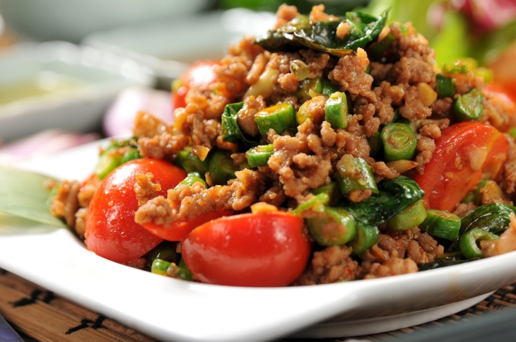 選用鮮嫩肥美的豬肉末烹調,香氣十足,辣度也十足的打拋豬肉,是許多嗜辣者朋友的最愛!鮮美不膩的豬肉香,在泰國獨有的酸辣調味下,顯得更加開胃誘人,每一口都是齒頰留香、辣得爽快的饗宴~