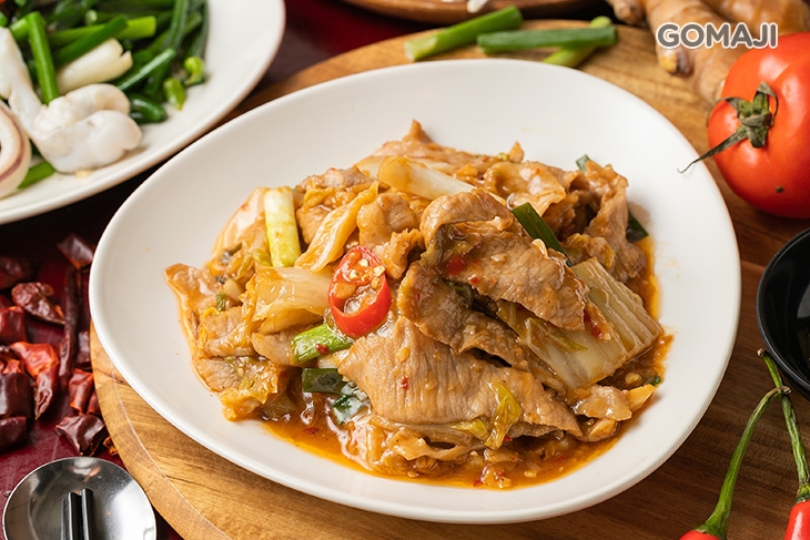 將辛辣酸爽的泡菜入味至上好極嫩的松阪肉中烹炒,透過主廚獨到的火侯、精湛的炒功,將豬肉的鮮甜以及泡菜箇中特別的酸甜勁辣完美提出,製成一道香氣撲鼻、鮮甜清爽的絕品佳餚,彈牙萬分的松阪肉,均勻吸附著泡菜的精華,每一次咀嚼,都在口中綻放酸而不嗆、香辣不麻的滋味,讓人食指大動,忍不住大口扒飯~