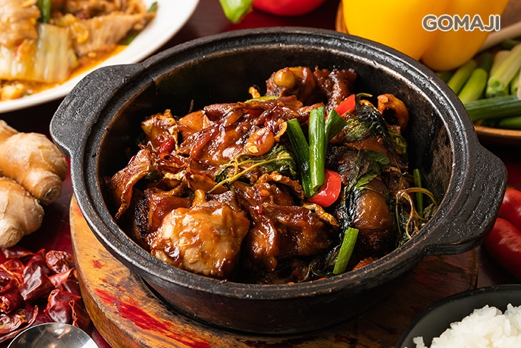 挑選肉質鮮嫩、彈牙的土雞肉,加入各種辛香、開胃的佐料入味,製成一道飄香萬里的三杯土雞。一端上桌,那開胃誘人的香氣,保證您尚未品嚐,便垂涎三尺!透過主廚精湛的手藝,以及準確地調味比例,讓這三杯辛辣不嗆、味濃鮮美,九層塔獨特的香氣,為整體添抹了一分迷人,美味更勝!紮實的雞肉,均勻吸附著三杯醬的精華,每一次咀嚼,都能感受到雞肉的鮮美交織著醬汁的香醇,豐富的口感,讓人久久難以忘懷。