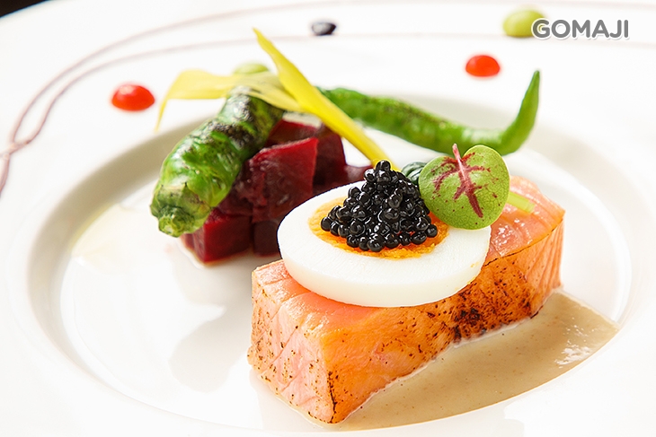 嚴選深海鮭魚,以煙燻的烹飪方式處理,鮮豔亮橘肉質色澤,搭配美麗精緻的創意擺盤,讓佳餚上桌的那一刻,深深打動饕客們的心,入口細嚐,感受鮭魚鮮甜香氣在舌尖上跳躍的繽紛口感,每一口都令人沉醉著迷,用心製做的料理,即便是看似簡單的食材,也能不同凡響。
