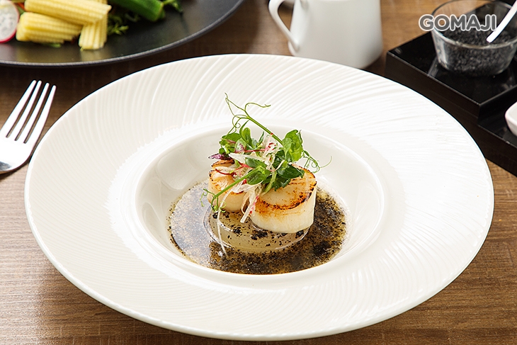 精選北海道干貝,香煎得軟嫩入味,佐松露點綴提香,搭配費時熬煮的特色高湯品嚐,干貝在嘴中大放異彩,美味無比,讓人吃過後都豎起大拇指、讚不絕口。