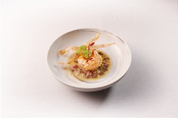 香煎海明蝦配羅勒起士餃