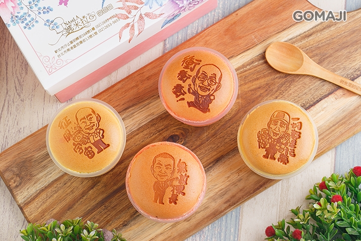 法式甜點的酪布丁燒,一層焦糖夜、一層法式烤布蕾、一層輕乳酪蛋糕,三種口味層次在嘴中一起化開的綿密滋味,再加上Q版政治人物,是款很特別精緻的甜點。