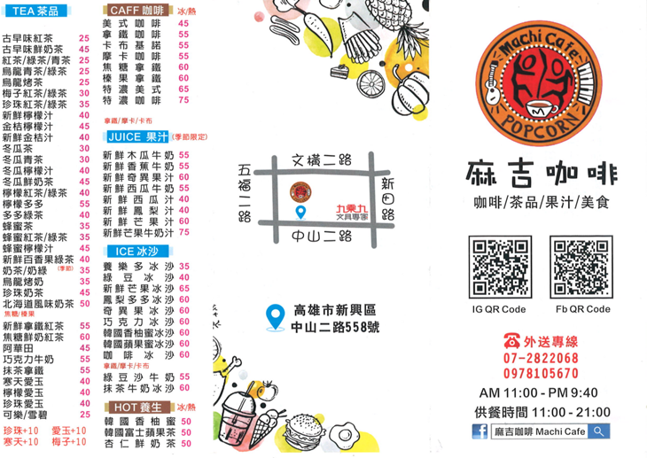 位於高雄市新興區中山二路上的「麻吉咖啡」,專賣平價美味的簡餐、茶品和咖啡等,一翻開店內的菜單,會發現選擇非常多,從咖哩飯、蓋飯、義大利麵、炒麵/飯到可口的炸物輕食通通都有,吃素的朋友也不用擔心,「麻吉咖啡」也有提供素食餐點,食材鮮美、份量充足,重點是擁有多層樓的用餐空間,寬敞又乾淨,很適合約朋友一起來這裡吃飯聊天唷!本次與GOMAJI聯手推出超值優惠,讓您用超親民的價格就能吃得飽飽、吃得開心!