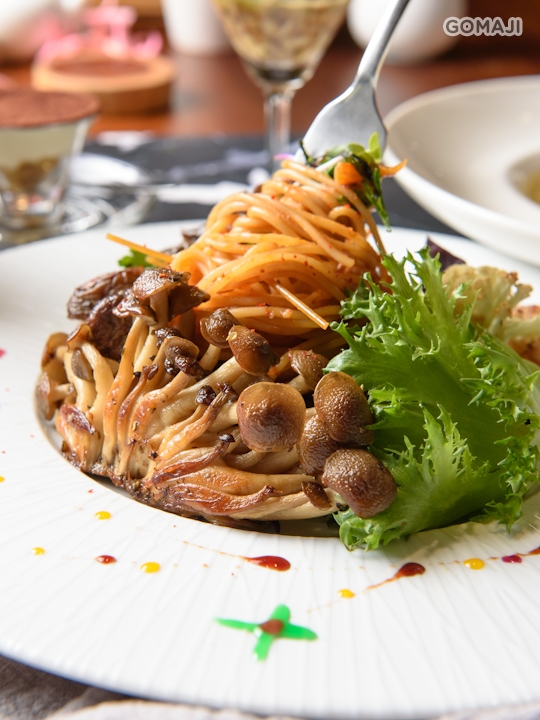 ★ 牛肝蕈菇佐食蔬(韓式辣醬義大利麵)