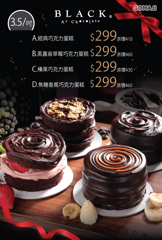 A.3.5吋經典巧克力蛋糕一個 / B.3.5吋黑嘉侖草莓巧克力蛋糕一個 / C.3.5吋榛果巧克力蛋糕一個 / D.3.5吋焦糖香蕉巧克力蛋糕一個