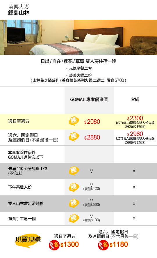 ➌一泊三食超值享受!方案更包含薑足浴體驗和薑黃手工皂一個!