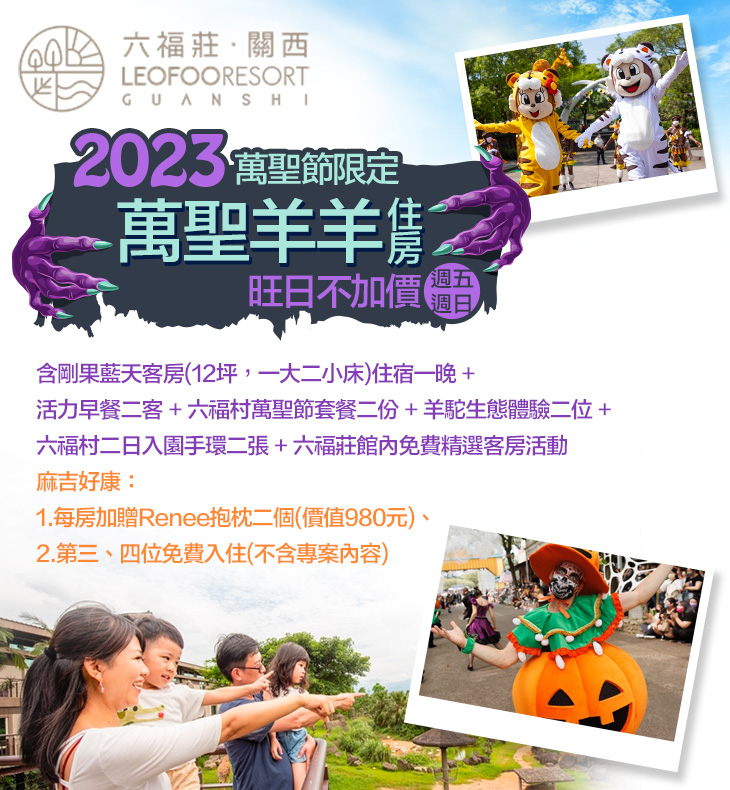一年一度的萬聖節即將來臨!2023年六福村墓碑鎮以「巫毒鬼娃」為主題,規劃了「日間惡鬼遊行」與「夜間喪屍遊行」,以及美國達人秀「屍控折骨舞」等表演,每週五至週日晚間還會帶來鬼魅特效投影!