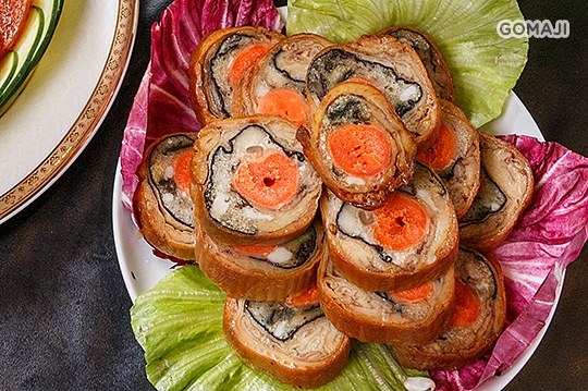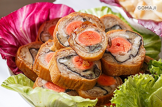 金棗密雞捲:使用新鮮雞腿與蜜金棗,以豆皮包裹,手工極致!
