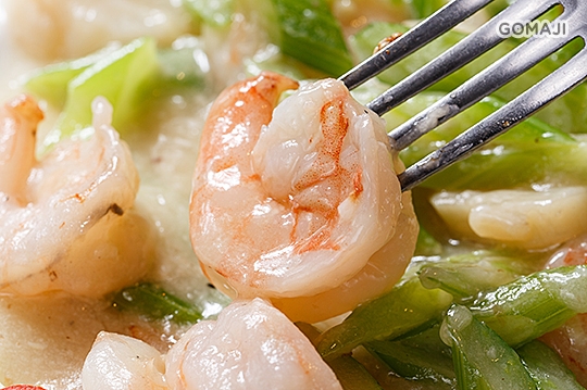採用進口芹菜與美國干貝燴炒澎湖草蝦仁,鮮甜美味!