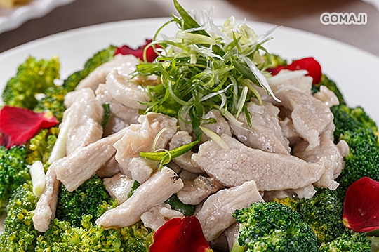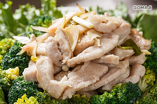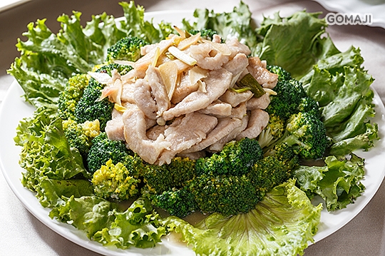 使用法國盤克夏極黑豬,豬頸肉,肉質軟嫩鮮美,加上富含青花素之花椰菜,頗具養生之美食!
