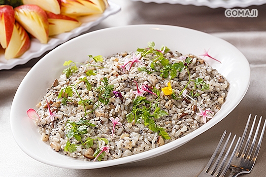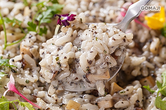 法國人對松露尤其癡迷,十九世紀巴黎著名的交際花歐裹妮更留下:「我愛男人,因為我愛松露」的名言。可見得松露在上等料理有著極重要的地位;以如此珍饈加上義籍長米、野菜菇,快火中翻滾,慢火熬煮,再配合時間慢慢將融合的湯汁,收縮在米飯裡面,建議入口時,別大口吞嚥,細嚼之中以鼻呼之,香氣直達腦門!