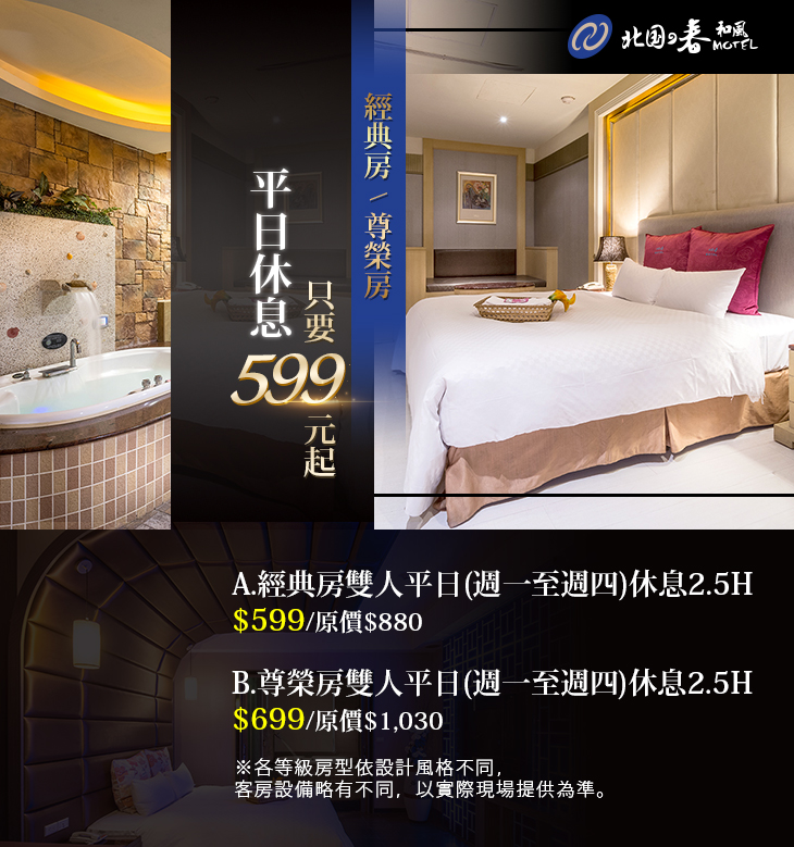 ※各等級房型依設計風格不同,客房設備略有不同,以實際現場提供為準。