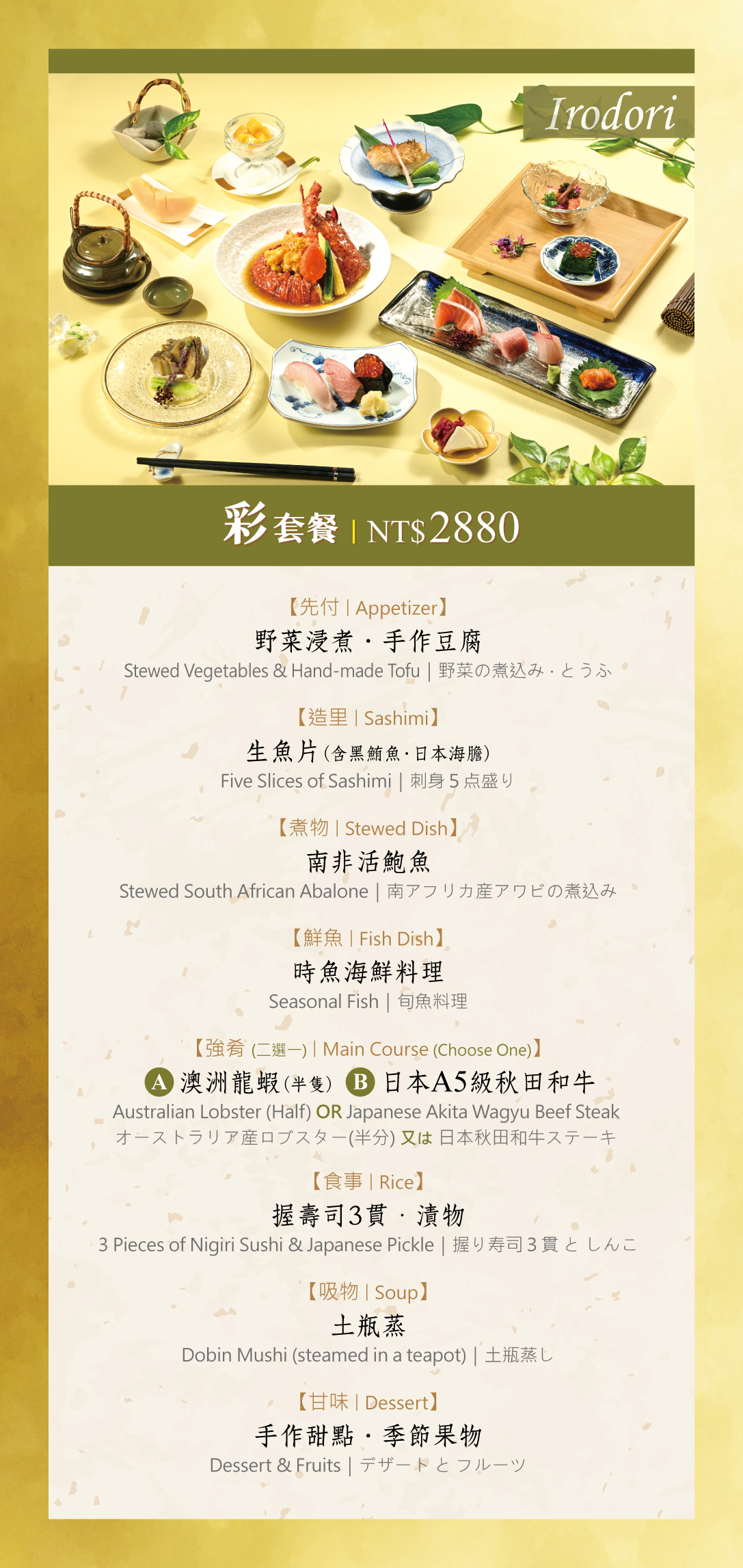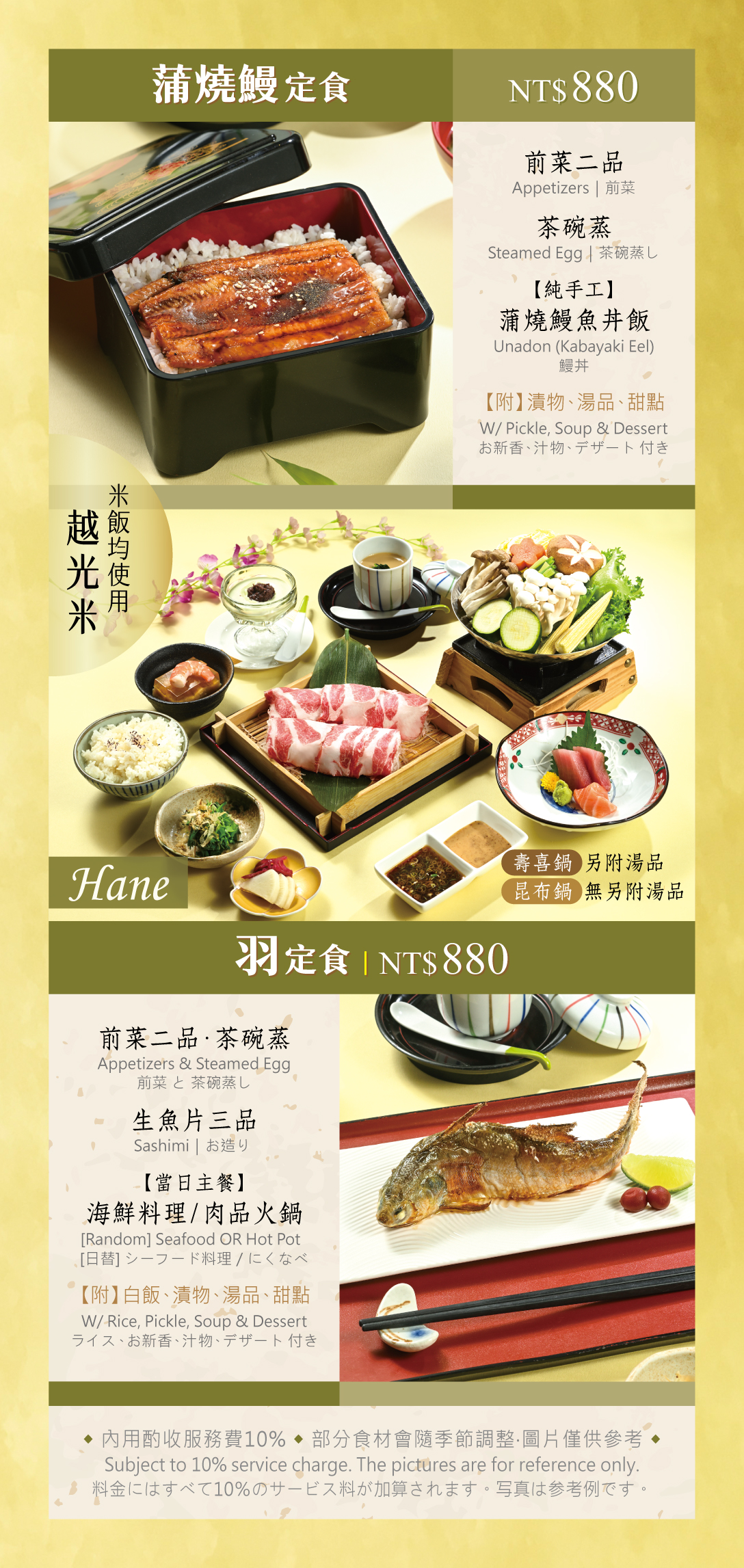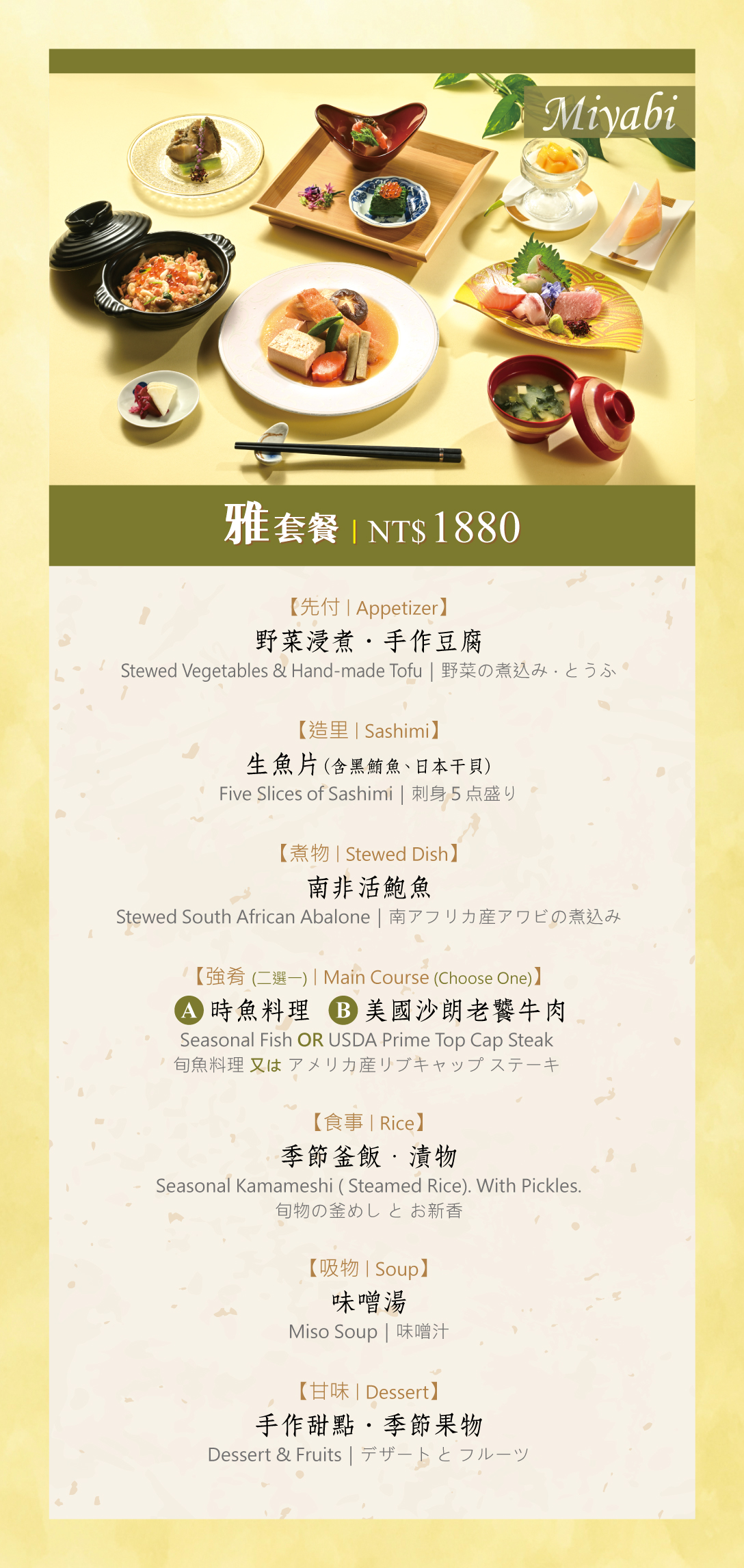 MENU ※菜色內容依季節時令適當調整,實際菜色以現場供應為主。