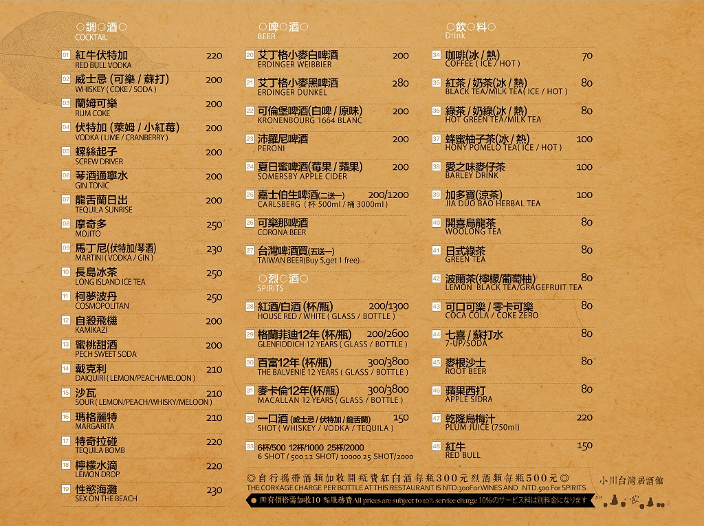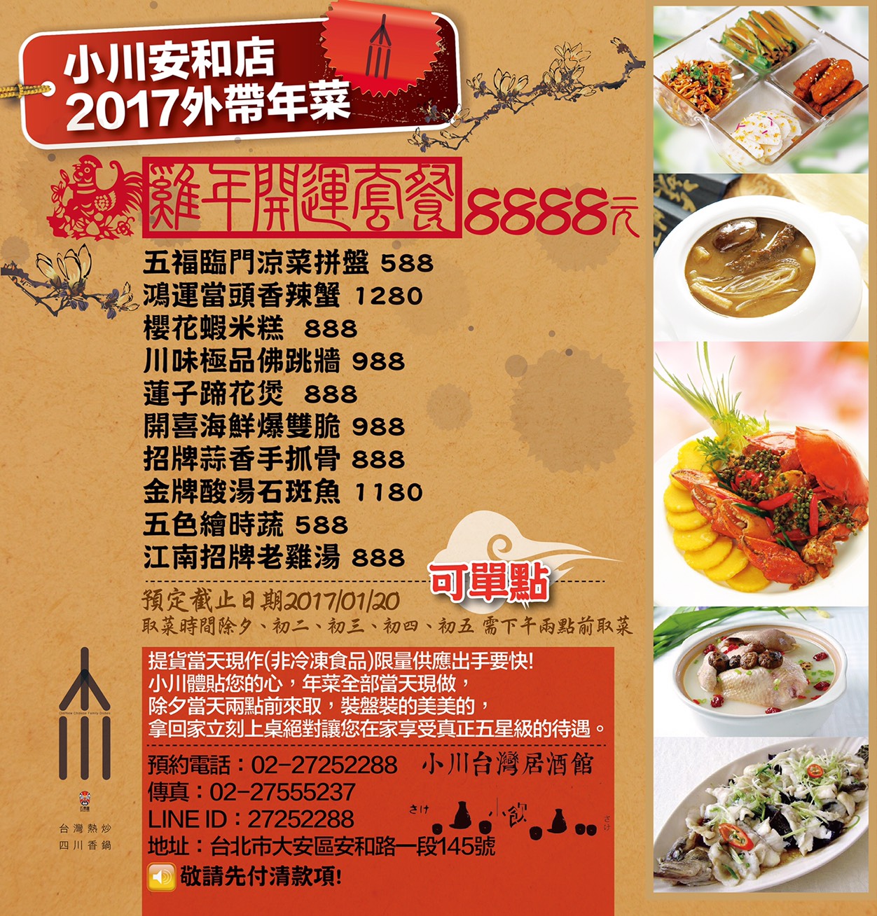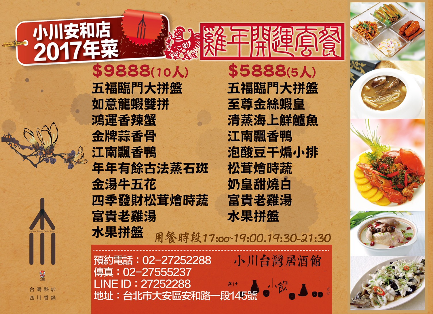 如果說,1990 是台北夜生活的蓬勃發展之際,那麼 2016 的今日,正是生活在台北的人們收割成果的歡樂時刻,多元美食結合夜的生氣,自成一格隱身都會的奇幻世界。首屈一指的「蘇誠修」設計大師以回歸自然、理性看待生活的本質穿透男男女女內心的情懷寄託,重新燃起對美食的渴望,並以道地的台灣熱炒為主軸,喚醒小時候的味蕾,循著記憶的脈絡,再融入熱情、重口感表現的四川料理,於是〝小川台灣居酒館〞就在如此需要情感溫暖的時代背景下,悄悄誕生了。