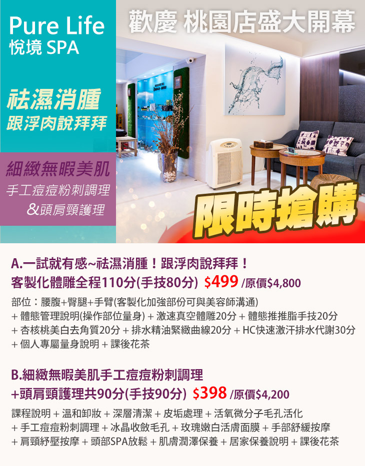 【Pure Life 悅境 SPA】感謝麻吉們熱烈搶購,已全數賣光光。