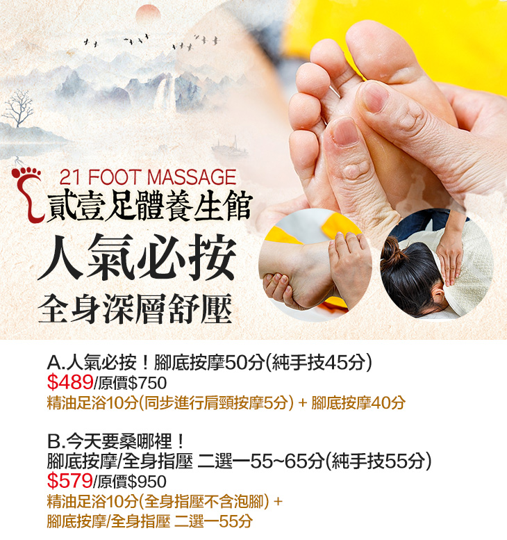 B.今天要桑哪裡!腳底按摩/全身指壓 二選一55~65分(純手技55分)