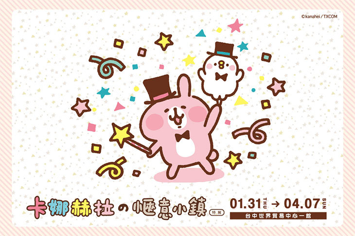 台中的粉絲們久等了!台灣第三站!蟬聯日本超人氣貼圖王的「卡娜赫拉」(Kanahei)首座大型個展,萌萌的P助(Piske)與可愛的粉紅兔兔(Usagi)邀請大家漫遊於愜意小鎮中,來趟最療癒的魔法旅程!