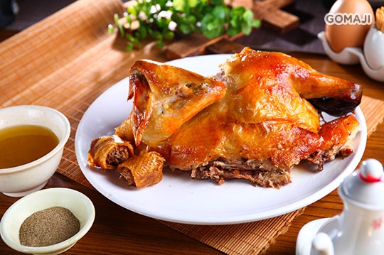 一律採用正土雞母溫體現宰,手工扒去體內多餘油脂後,使用高級中藥配方烘烤,整隻雞皮酥肉嫩不油膩,風味獨特!