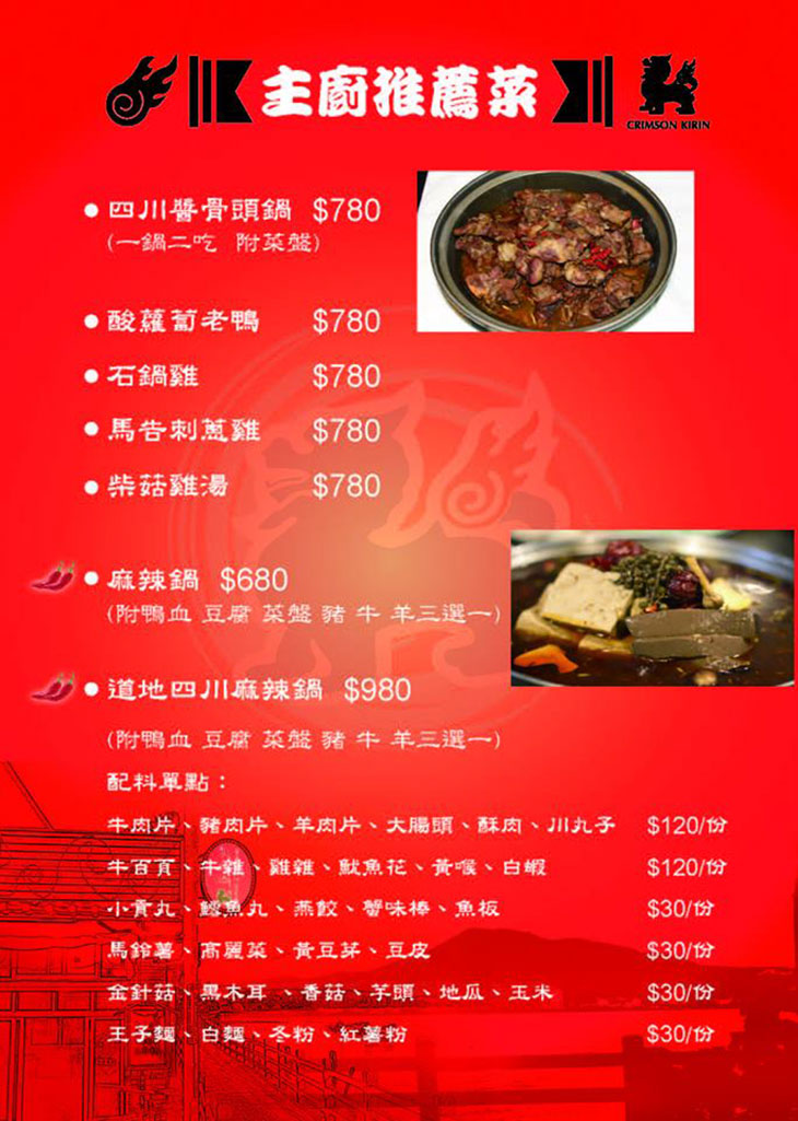 店主人以非常嚴謹的態度及堅持,打造火麒麟正宗川味的麻辣料理,在食材、配料、佐料等選用上,完全崇尚天然,讓大家吃出香辣美味之餘,也能吃的健康!