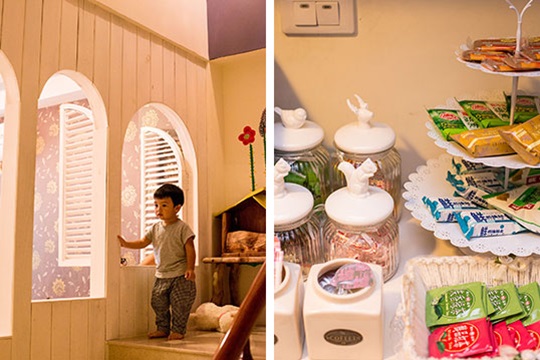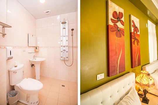 民宿外精心擺設與佈置,增添活潑溫暖的氛圍,以溫馨色調與高雅的水晶燈飾做為客廳設計的主軸,充滿家的舒適與溫暖的氣息。室內佈滿了陶瓷娃娃及女孩風格的彩繪圖案,圍繞著純真、可愛的氛圍。