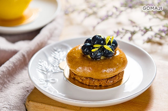 顆顆飽滿渾圓的藍莓落在如焦糖色澤般的泡芙上,恰如其分的甜香滋味伴隨著淡雅果香,吃上一口好想對老闆立正敬禮!