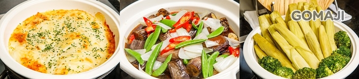 | 千層洋芋 / 醬爆茄子 / 清蒸玉米筍
