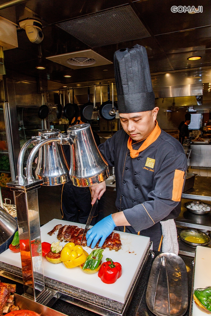 【遠東Café】現點現做的中式拉麵,是您不容錯過的好風味!由拜師西安著名「麵點王」,擁有近十五年經驗的香格里拉國際大飯店拉麵主廚馮永田師傅親自上陣,每日午、晚餐獻上精彩「甩麵秀」,為您帶來色、香、味俱全的風味美食,呈現北方特色飲食風采!