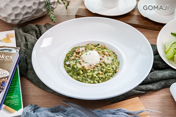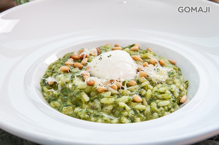 喜歡淡雅風味的朋友可選擇這道菠菜燉飯,清甜的菠菜香完美融入在米粒中,刀叉輕輕一搓,甜美的蛋液緩緩流出,替燉飯換上一身亮麗衣裳,閃閃發光。入口細嚐,濃淡適中,完美展現蔬菜香與食材的均衡滋味!