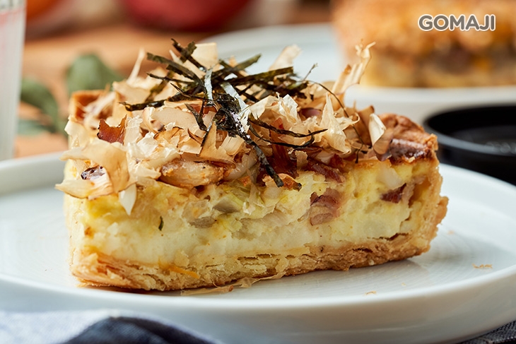 走和風路線的「海派章魚哥」,創意來自於日本大阪的章魚燒,新鮮彈牙的章魚,與甘醇濃郁的和風調味一同特製成綿密香濃的內餡,烹烤過後,再撒上滿滿的柴魚片及些許海苔享用,與章魚燒有異曲同工之妙,卻又新穎的滋味,完美地將日式經典與法式美味結合,給您與眾不同的品派時光!