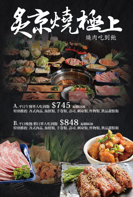 ☬ A.平日午餐單人吃到飽/B.平日晚餐/假日單人吃到飽 ☬