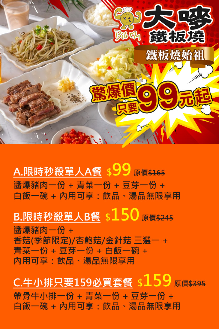 C.牛小排只要159必買套餐
