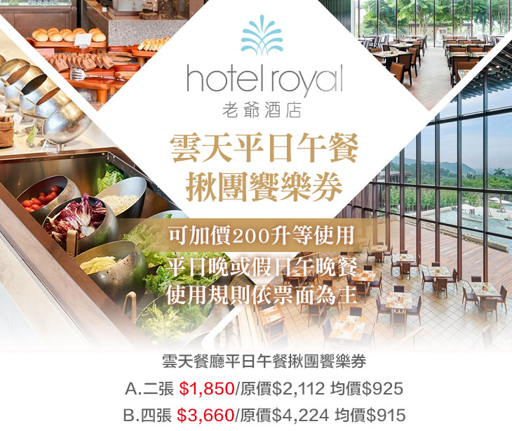 (可加價200升等使用平日晚或假日午晚餐;使用規則依票面為主)