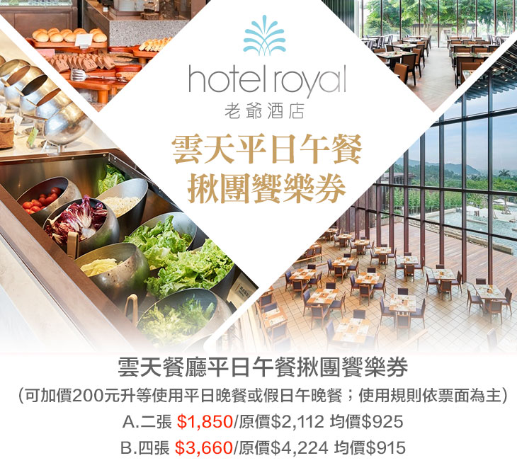 (可加價200元升等使用平日晚餐或假日午晚餐;使用規則依票面為主)