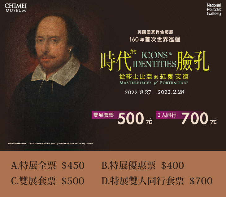 《時代的臉孔:從莎士比亞到紅髮艾德》是英國國家肖像藝廊160多年來的首次大規模世界巡迴,被譽為「一生僅有一次遇上的機會」!大批從未離開英國國土的國寶級作品,匯聚台南奇美博物館登場。本展為奇美博物館30週年特別獻禮,邀請大家一同飽覽跨越500年的時代名人之生命歷程,看見他們如何發揮力量影響英國、豐富世界。