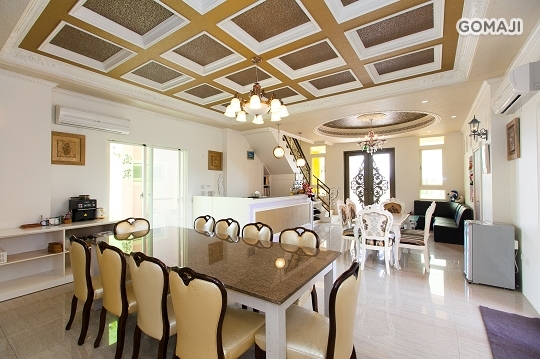 坐擁一千五百坪的寬敞園區,傾盡四年的時間全力打造出引人注目的橘黃色歐式挑高城堡,搖曳著荷花的心形湖、放空島、鴨母船、觀景平台、兒童戲水池等遊憩空間,提供旅人一處放鬆、放空的休閒靜地。如同童話世界般,大而夢幻的城堡,置身於其中,彷彿王子公主充滿浪漫氣息~寬闊挑高的豪華客廳、聳立大門搭配華麗的水晶吊燈,壯觀富麗的程度讓人為之讚嘆。