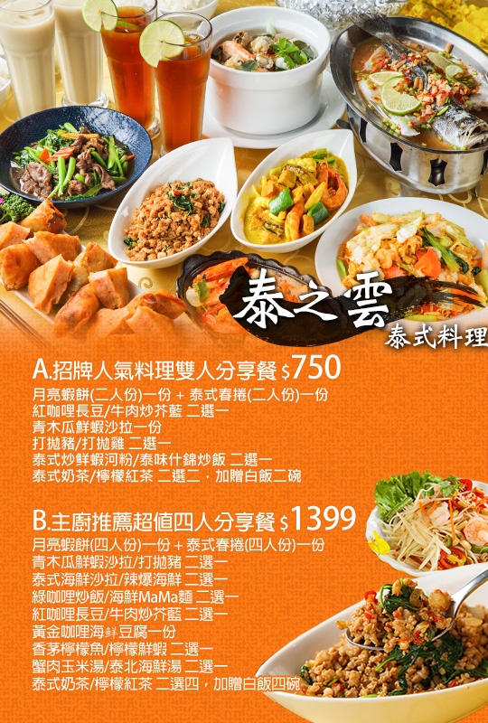 【泰之雲泰式料理】涵蓋了泰國、雲南與緬甸等三個國度的經典傳統料理,並重金特騁前台北泰行政主廚駐店服務,就是要讓老饕在這裡能品嚐超越五星級的美味好料,離開前卻是以平實價格結帳滿載而歸!除此之外還有許多當地的特色菜餚,是在台北泰式料理中少見的美饌!