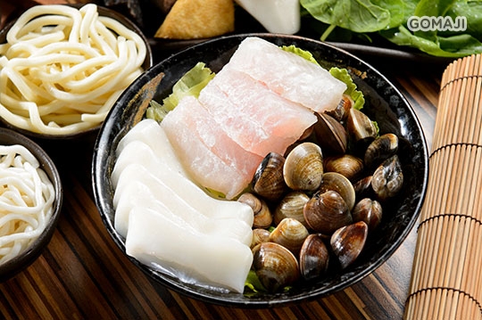 海鮮三拼:蛤蠣 + 鮮魚片 + 魷魚