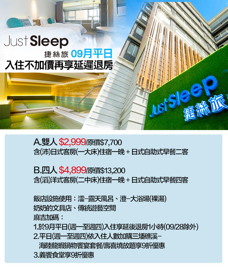 【JustSleep捷絲旅 宜蘭礁溪館】感謝麻吉們熱烈搶購,已全數賣光光。