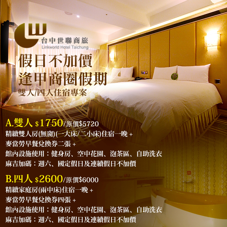 【台中-世聯商旅】感謝麻吉們熱烈搶購,已全數賣光光。