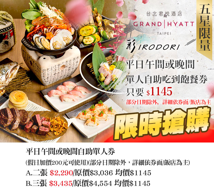 【台北君悅酒店-彩日本料理】感謝麻吉們熱烈搶購,已全數賣光光。