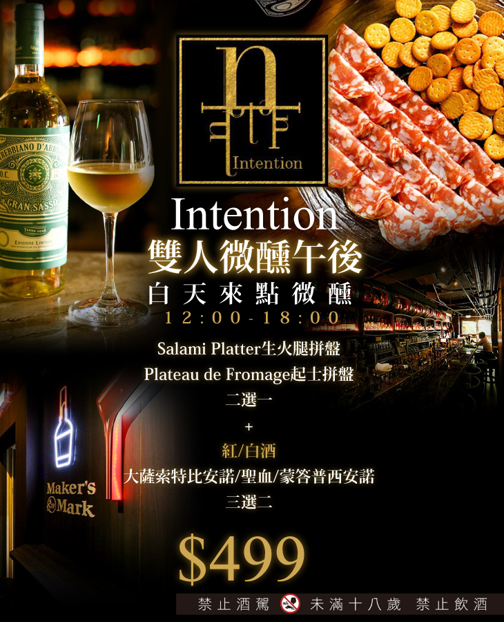 本次與GOMAJI聯合釋出超值雙人超值優惠,喜歡透過小酌一杯來放放鬆的您,我想,【Intention】會是您最佳的選擇!