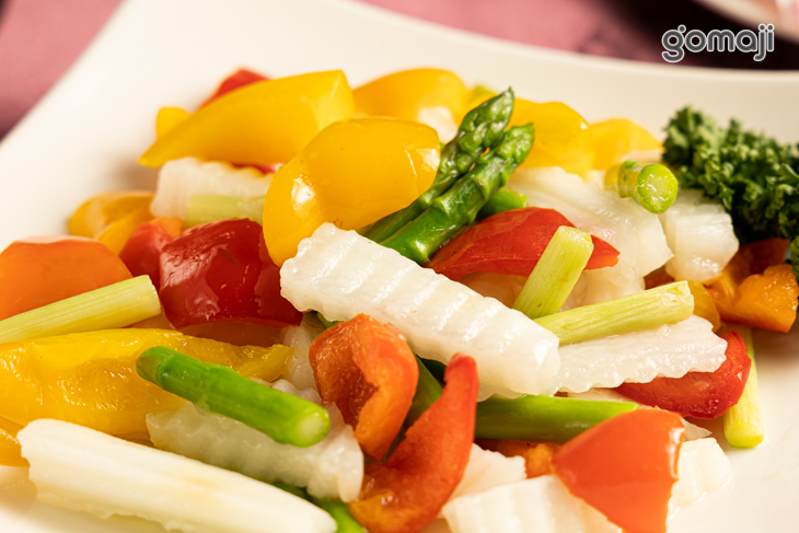 這道翡翠蔗筍,搭配時令蔬菜豐富滋味,經烹調後散發出微妙的清香,口感脆嫩爽口,帶著天然蔬菜的清甜和淡淡的香氣,每一口都散發出獨特的風味,令人愉悅無比。這道翡翠蔗筍不僅美味,更是一道口味輕盈的佳餚,也是營養豐富的健康選擇,帶來自然蔬菜的美好滋味,讓您享受多重口感的美味饗宴。
