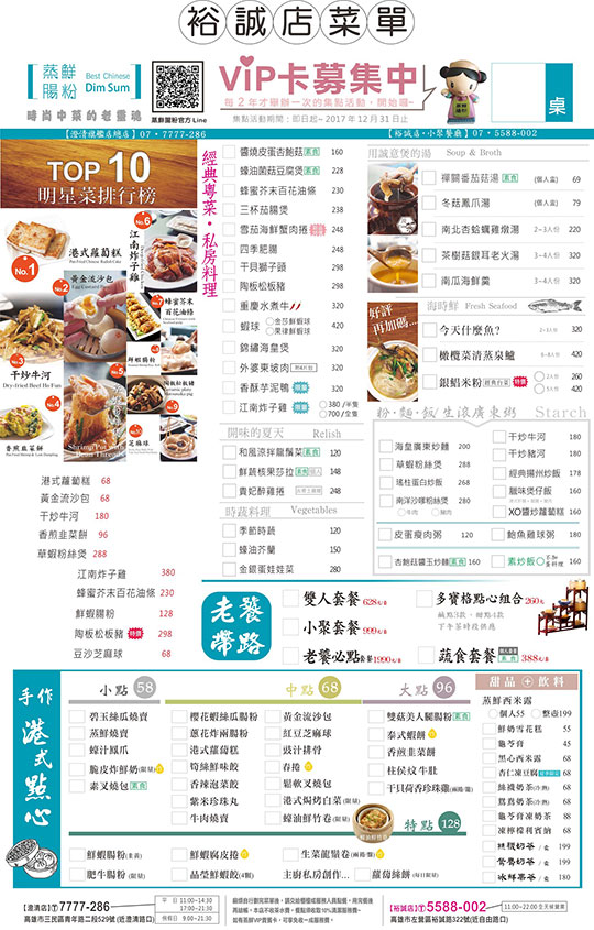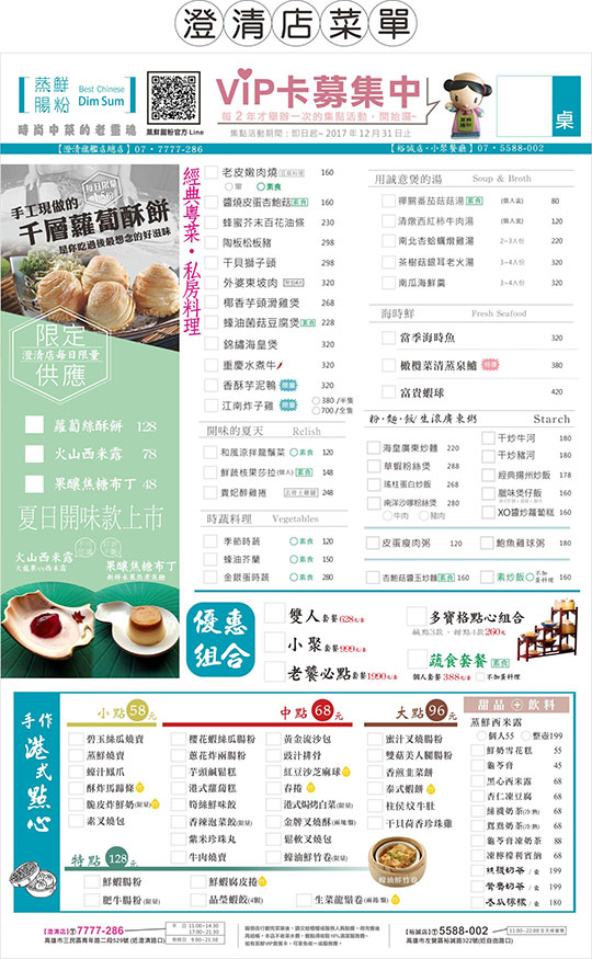 新鮮天然食材是成就美味料理的關鍵!【蒸鮮腸粉港式飲茶】始終堅持著這條最基本原則,除了原本名聲大噪的港式點心,加入歷史深厚的粵菜料理,成功轉型為高雄質感一流的餐廳!特地聘請在南台灣無人不曉的、正統粵菜香港師傅掌廚,一道道色香味俱全的真功夫美饌上桌!