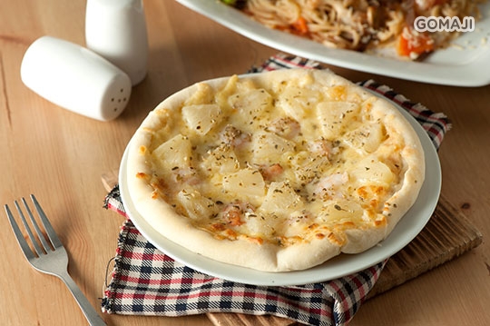 眼前這份蝦仁鳳梨披薩肯定讓人大大開胃!Q彈有勁的餅皮上舖滿新鮮蝦仁、酸甜鳳梨,品嚐同時還可享受牽絲過癮的感動,多層次的滋味在舌尖上完美綻放,大人小孩都難以抵擋啊!