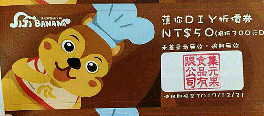 另贈集元果香蕉觀光工廠DIY折價券,到了假日時光,不妨帶著全家大小一起來同樂,增進親子間的情感,也能擁有一個歡樂假期!