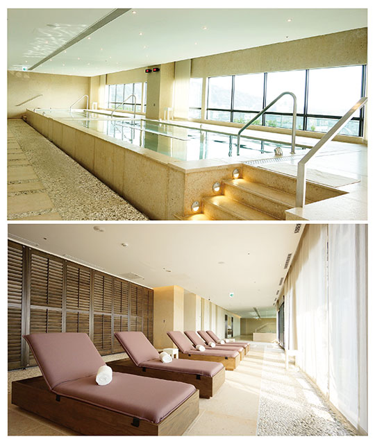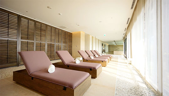 坐落於飯店高樓層,讓旅客於享受水療的同時也能一覽戶外綠意景致。除了享受北投溫泉區的特有的白磺溫泉,及烤箱、蒸氣室等被動式的運動之外,館內特別由專業教練規劃一系列「水適能」課程,在溫泉池中運用水的壓力與浮力,進行各式伸展與律動,為身體各部位帶來充分的按摩與呼吸,使身心達到最佳的平衡狀態。