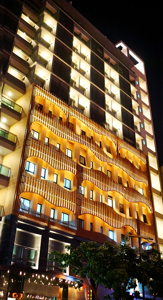 流線型的設計讓空間訴說著溫和的語彙,獨特的扇葉木牆使室內流洩和煦光影,置身其中自是一種紓壓的享受。 客房備有乾溼分離泡湯浴池,讓賓客盡享北投白磺溫泉舒壓入眠。