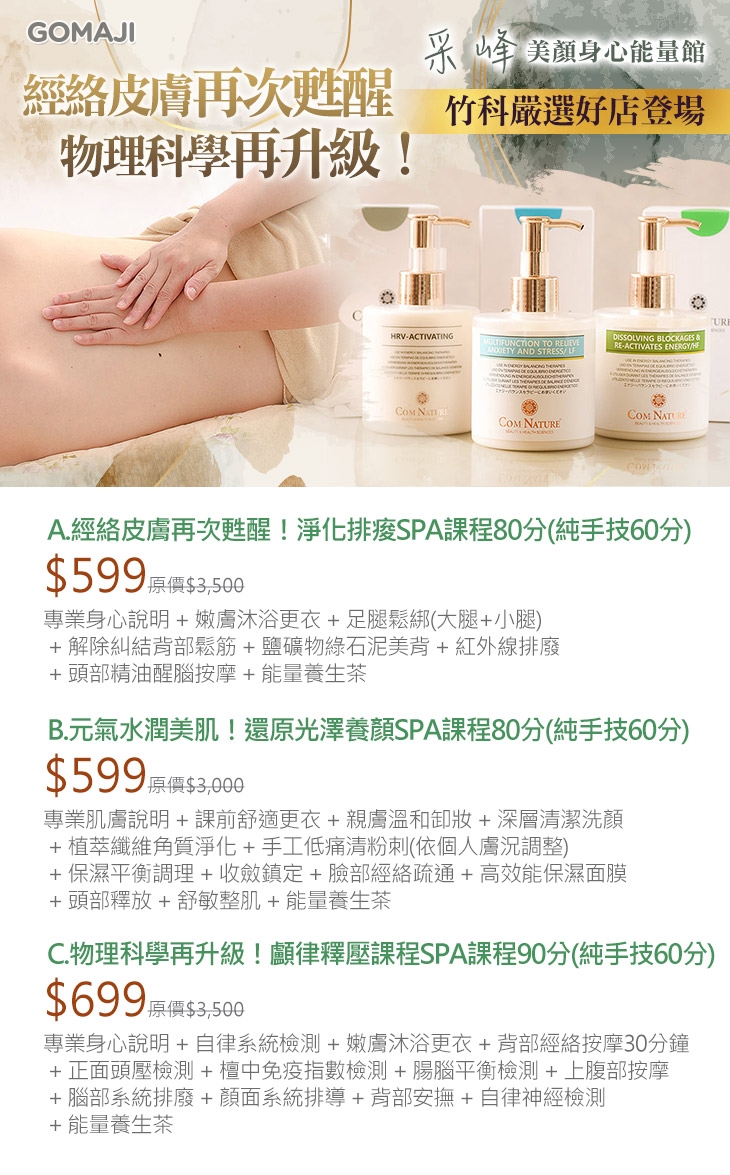 ➽ A.經絡皮膚再次甦醒!淨化排痠SPA課程80分(純手技60分)