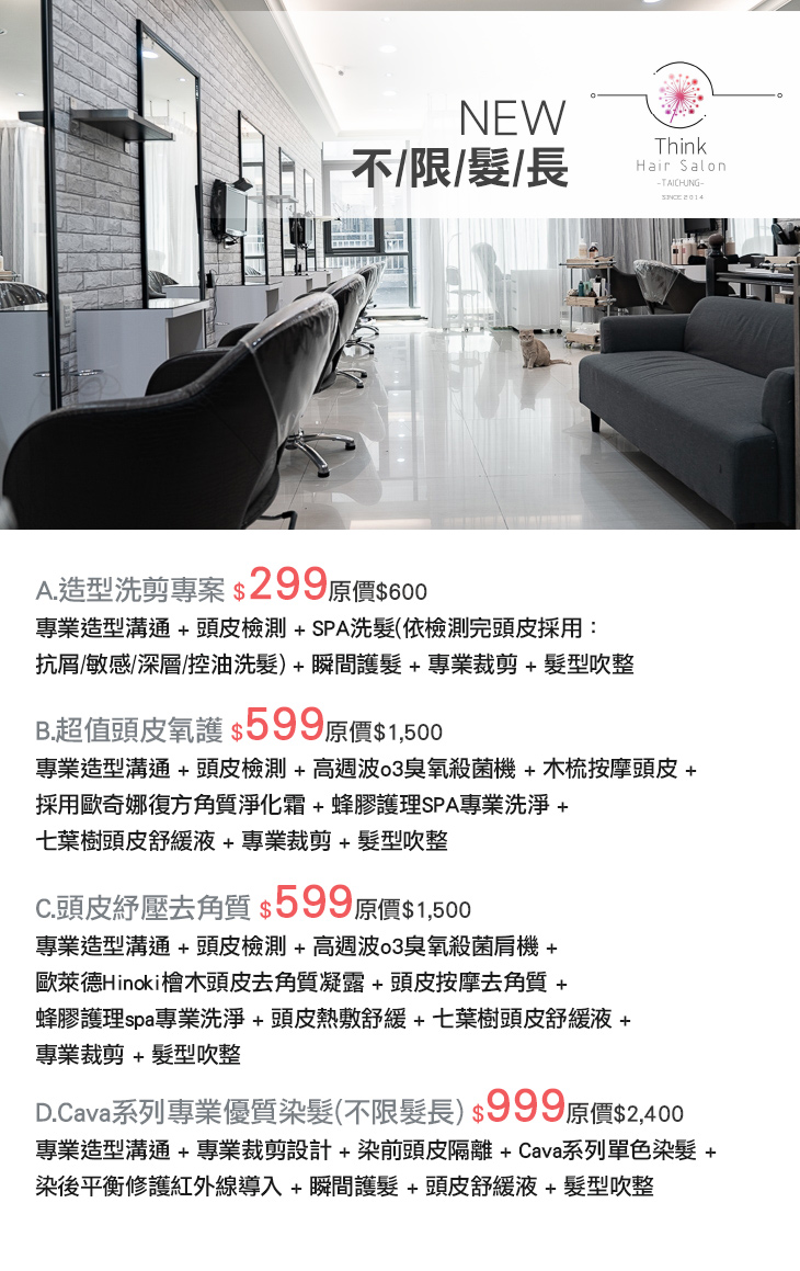 專業造型溝通 + 頭皮檢測 + 高週波o3臭氧殺菌肩機 + 歐萊德Hinoki檜木頭皮去角質凝露 + 頭皮按摩去角質 + 蜂膠護理spa專業洗淨 + 頭皮熱敷舒緩 + 七葉樹頭皮舒緩液 + 專業裁剪 + 髮型吹整